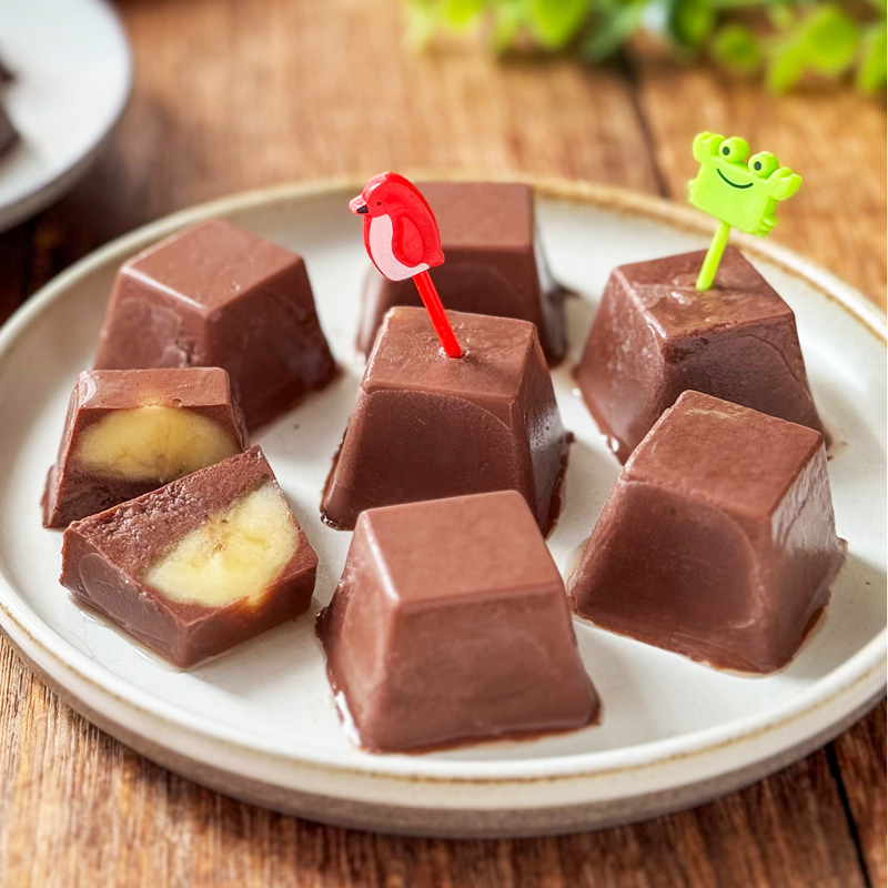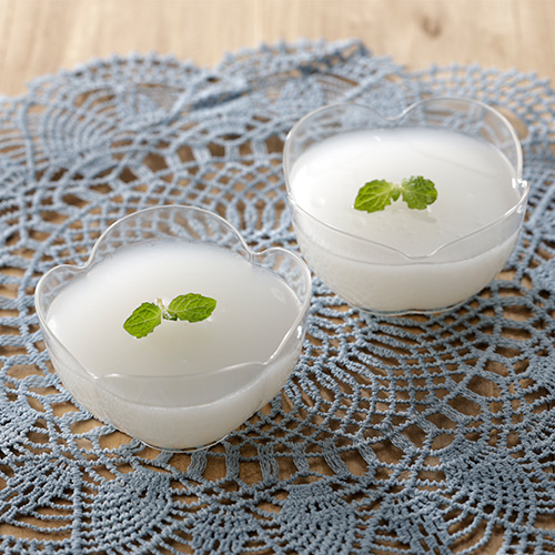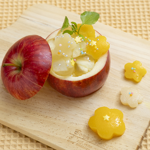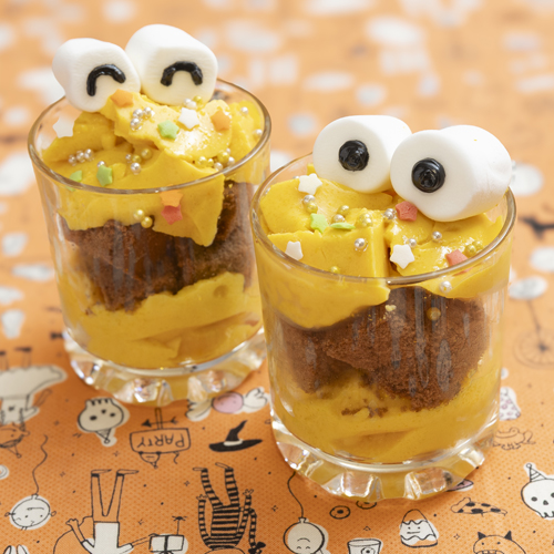 • (6)(2)のかぼちゃに流し入れます。粗熱が取れたら冷蔵庫で冷やし固めます。