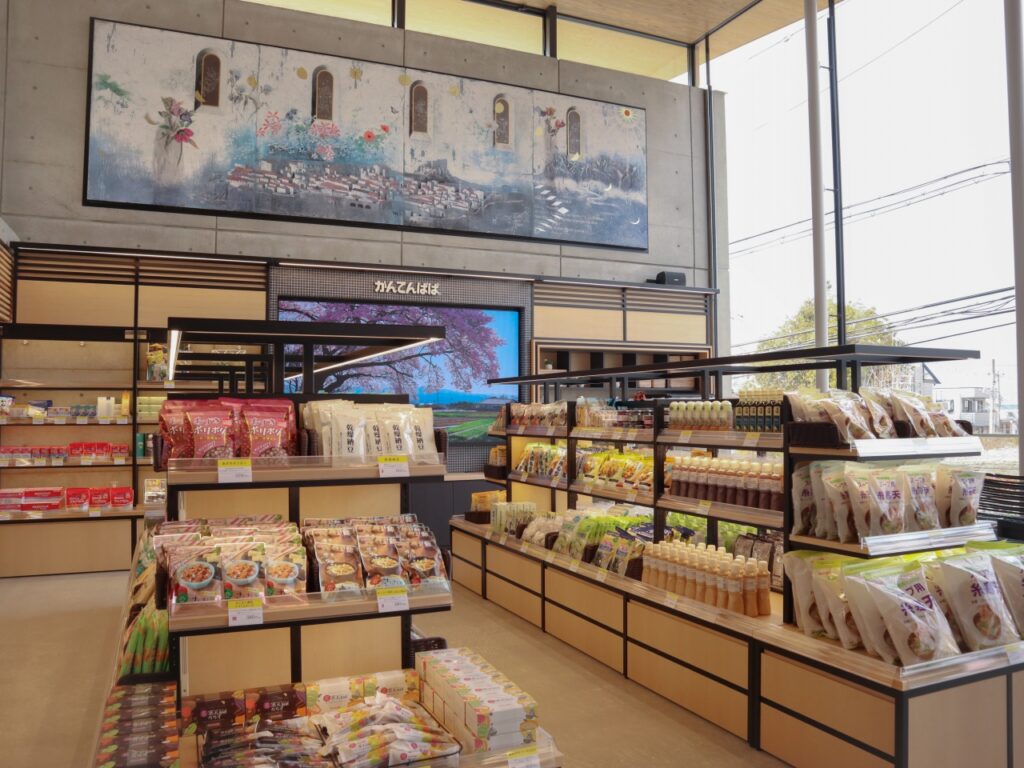 店舗には200種類以上におよぶ「かんてんぱぱ」製品をはじめ、世界酒蔵ランキングで6年連続ベスト10に選出されているグループ会社「米澤酒造」の日本酒『今錦』、さらには全国各地、なかでも長野県産品を中心に厳選したおすすめ品など「おいしいもの」が並ぶ売り場を備えております。