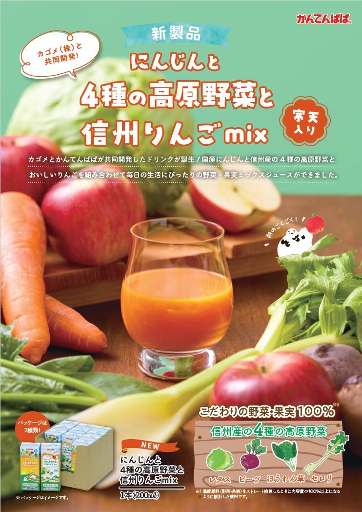 国産にんじんをベースに、長野県産のりんごと4種の高原野菜をミックスしています。