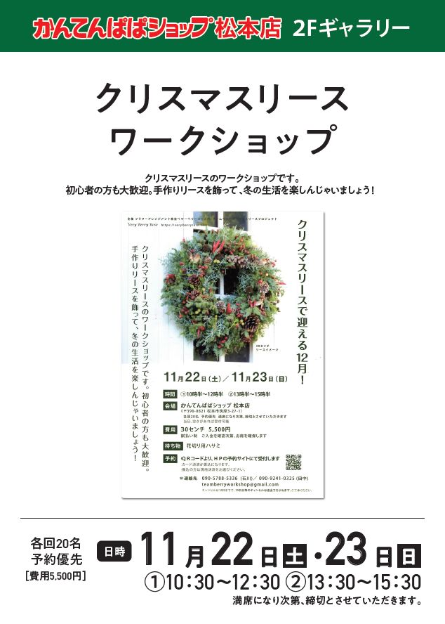各回20名 予約優先 満席になり次第締切とさせていただきます