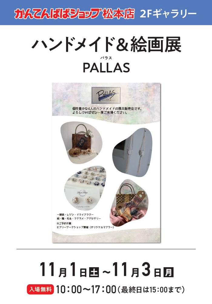 【2Fギャラリーのご案内】ハンドメイド&絵画展 PALLAS