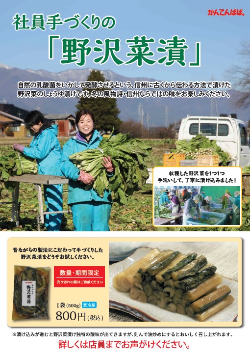 そしてなんとこの野沢菜漬、土づくりから収穫、漬け込みまで全て社員の手づくりなんですよ!