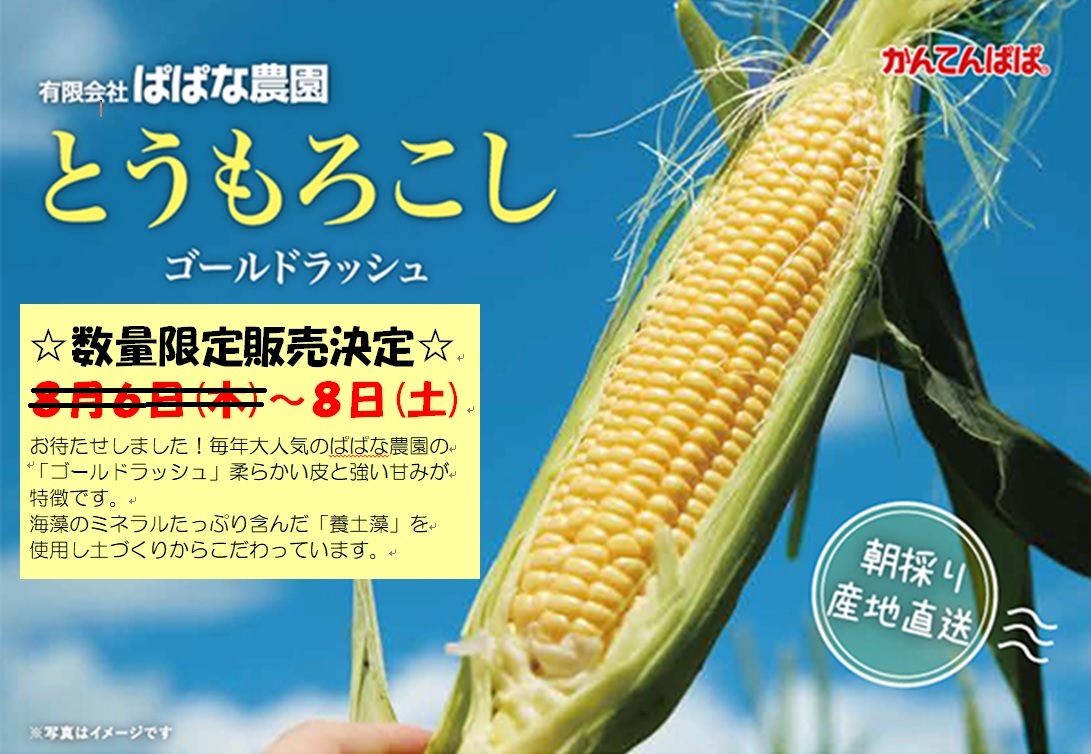 8月8日10時到着予定!とうもろこし150本限定入荷!!
