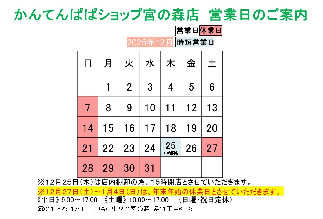 いつもかんてんぱぱショップ宮の森店をご利用いただきありがとうございます。