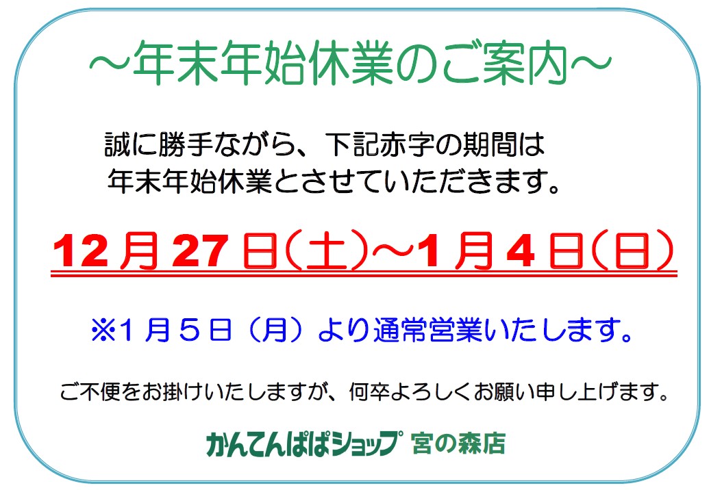 いつも かんてんぱぱショップ宮の森店をご利用いただき、誠にありがとうございます。