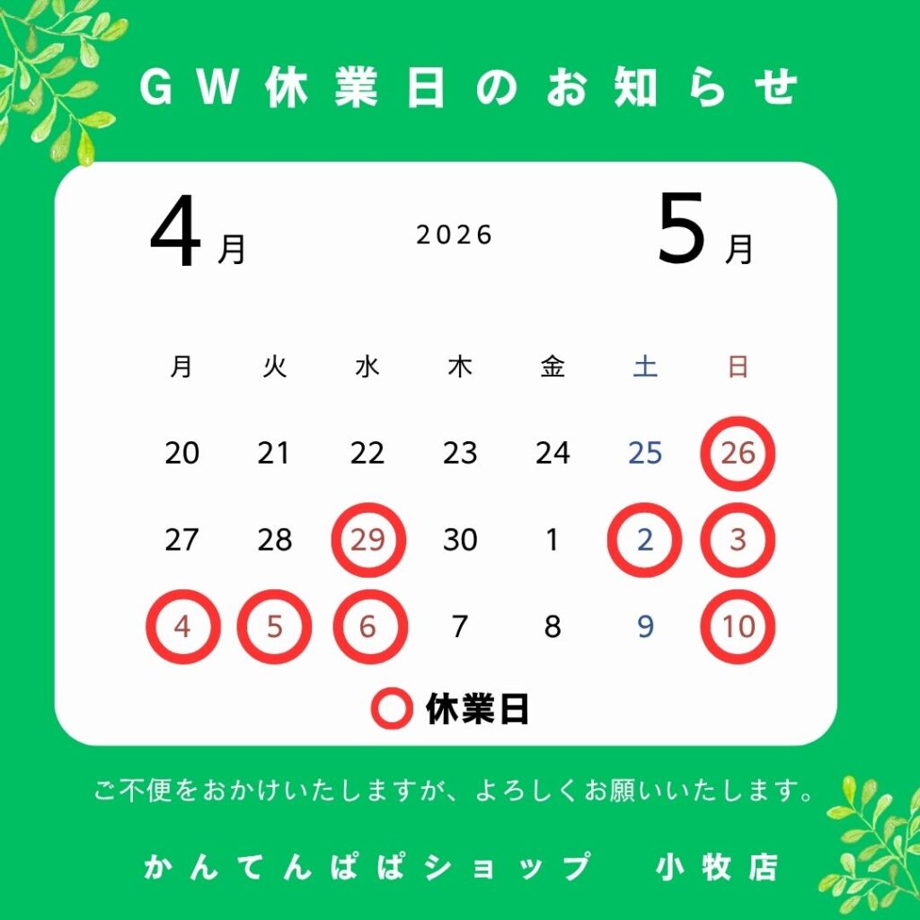 ゴールデンウィークの休業日のご案内です。