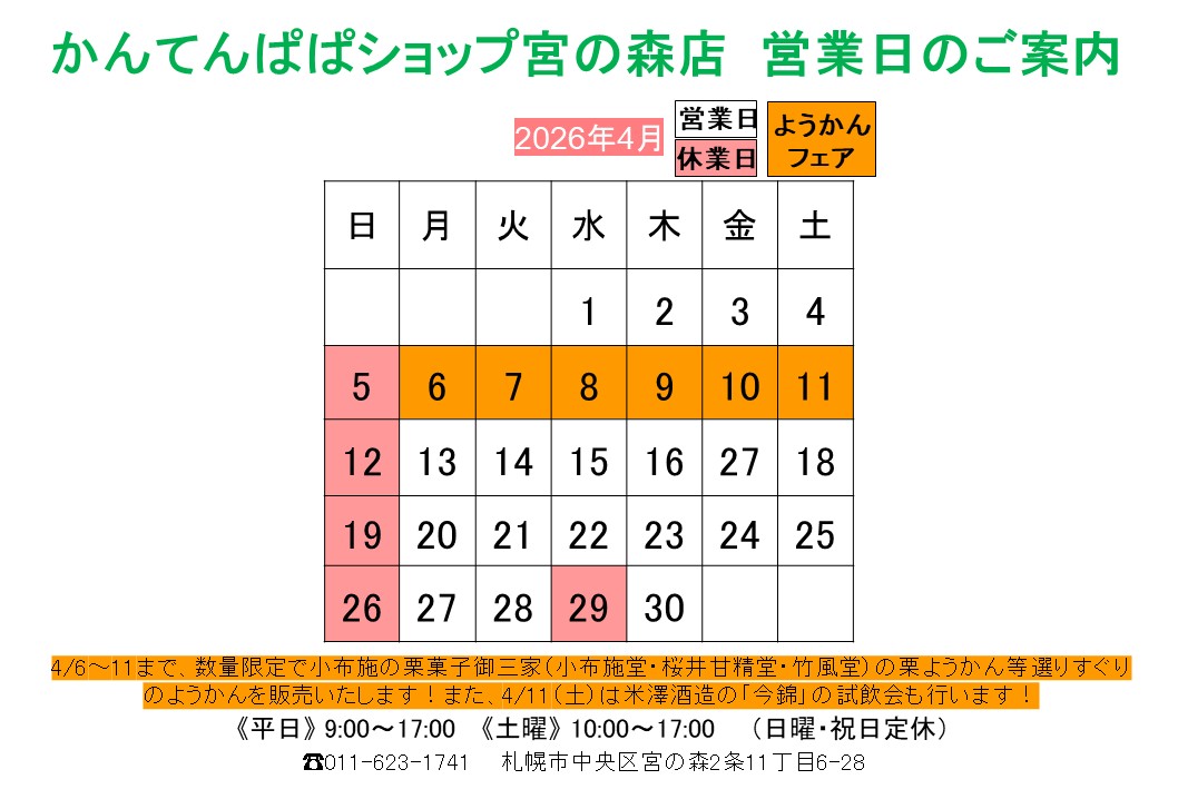 いつもかんてんぱぱショップ宮の森店をご利用いただきありがとうございます。