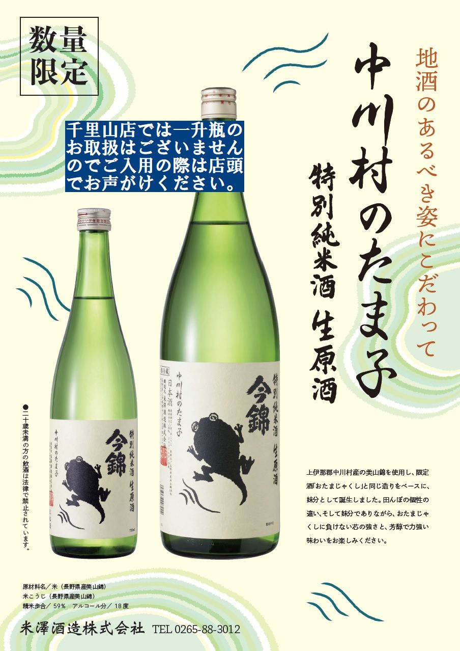 『中川村のたま子 生原酒』が入荷いたしました!
