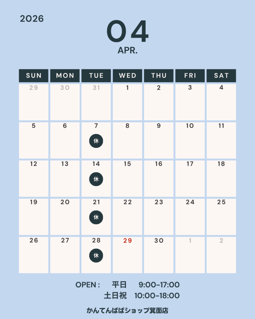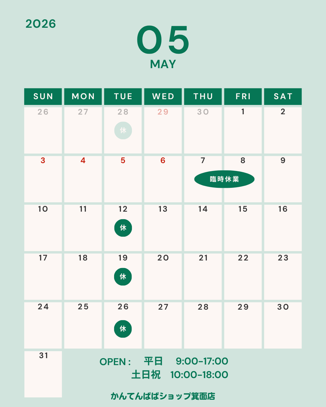 いつもかんてんぱぱショップ箕面店をご利用いただき、ありがとうございます。