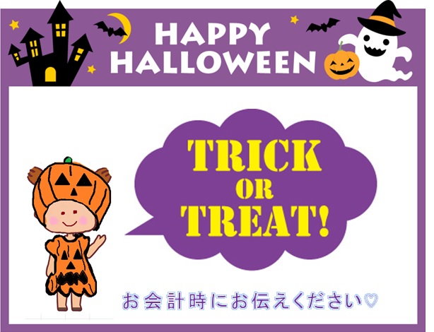お会計時に「トリック オア トリート♪」とお伝えください。